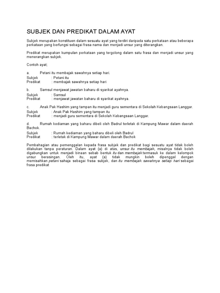 Subjek Dan Predikat Dalam Ayat Pdf